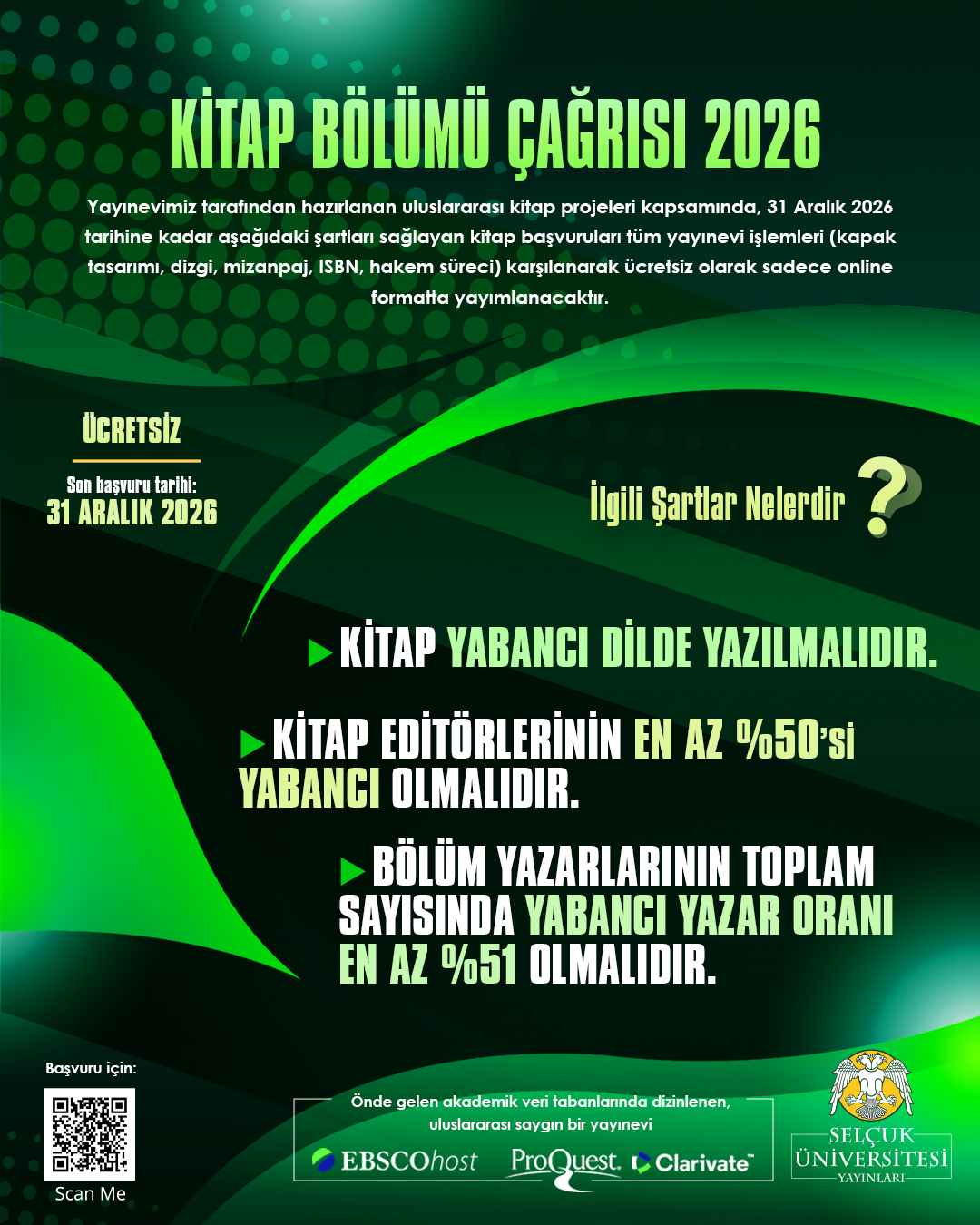 Selçuk Üniversitesi Yayınevi olarak 2026 yılı yayın programımız kapsamında uluslararası nitelikte kitap